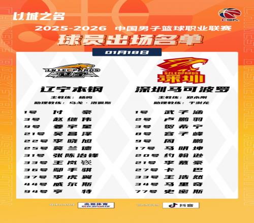 体育播报1月18日宣 今晚19:35,辽宁主场迎战深圳,赛前大名单出炉。