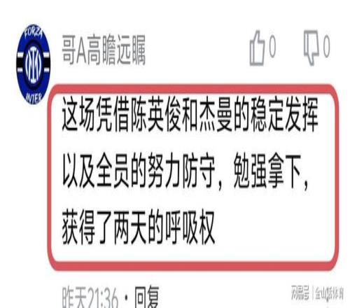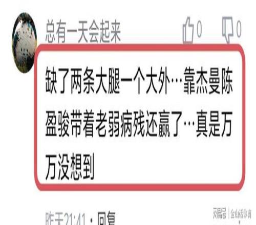 陈盈骏本场的表现,也得到了许多网友的赞扬。“北京队两位真大腿——陈盈俊和杰曼。”;“陈盈骏是北京男篮晴雨表!”;“缺了两条大腿一个大外…靠杰曼陈盈骏带着老弱病残还赢了…真是万万没想到”;“这场凭借陈英俊和杰曼的稳定发挥以及全员的努力防守,勉强拿下,获得了两天的呼吸权”……